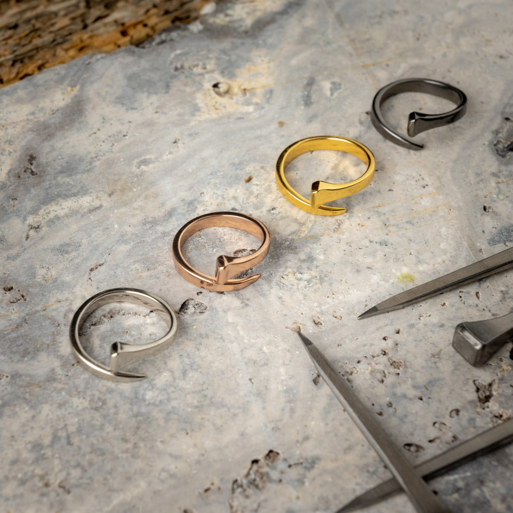 Merész és dinamikus gyűrű, amelyet a patkolás mestersége és a jellegzetes patkószög inspirált. Az erőt, kitartást és szerencsét szimbolizáló dizájn modern, karakteres formát ölt – tökéletes választás azok számára, akik egy kifinomult, mégis határozott megjelenésű ékszert keresnek.