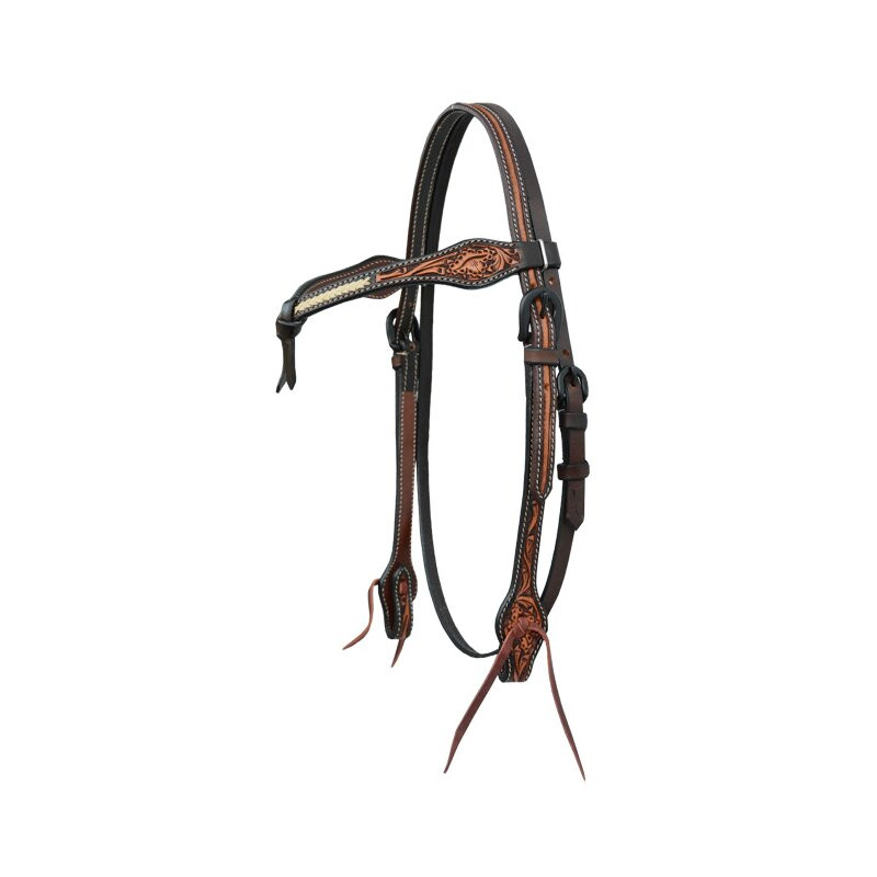 Western kantár V-alakú homlokszíjjal, nyersbőr díszítéssel